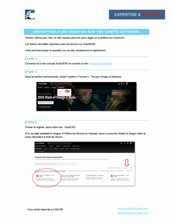 Ce guide te montre, étape par étape, comment poser efficacement tes questions sur les forums Autodesk pour obtenir des réponses rapides et pertinentes. Tu y découvriras comment accéder au bon endroit, comment effectuer une recherche intelligente et comment publier une question claire qui attire l’attention… sans tourner en rond.